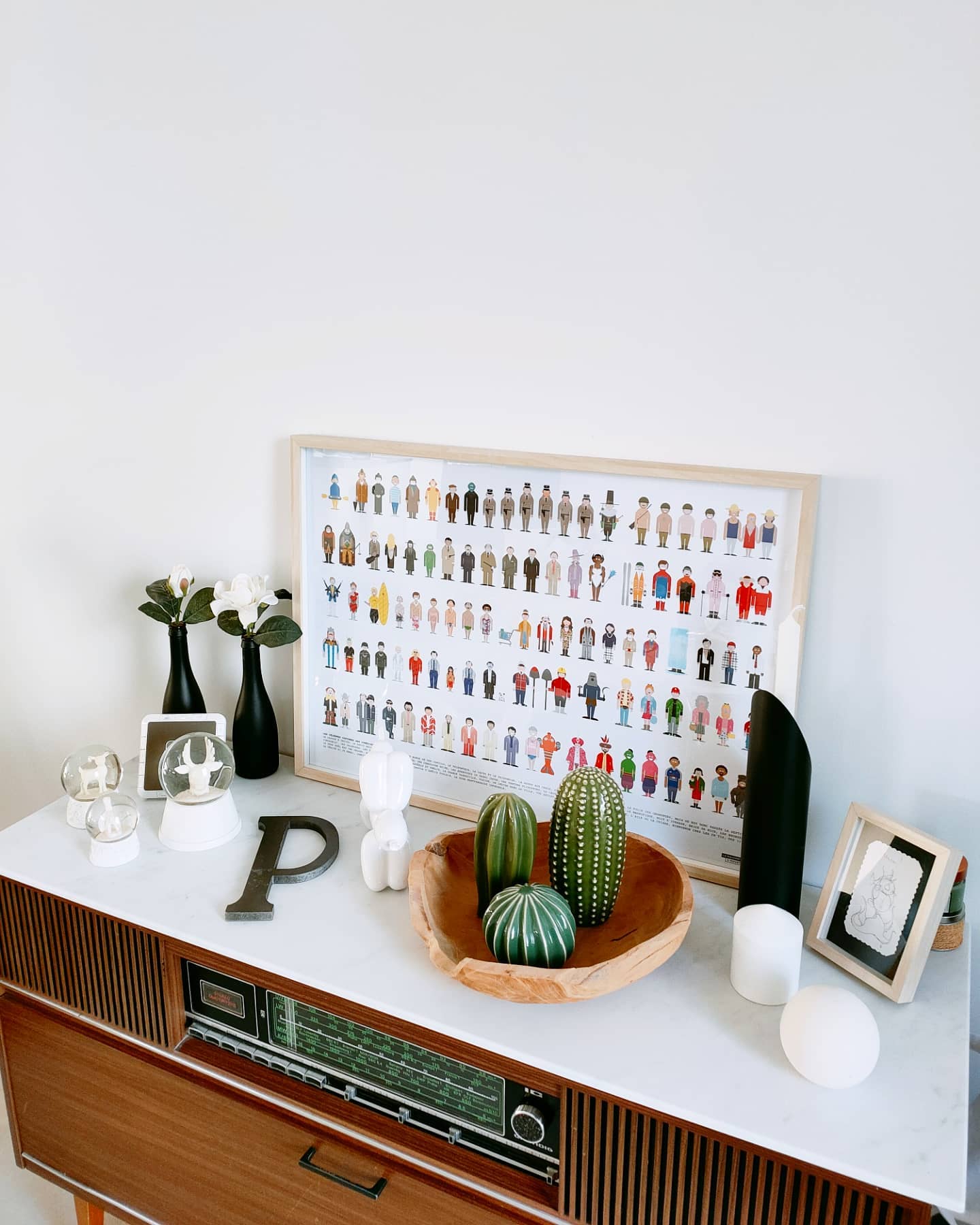 Je l'ai placé dans le salon où il a trouvé sa place sur le vieux meuble radio hérité de mon beau père qui nous suit depuis des années et qu'on adore