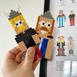 Bon je ne suis sans doute pas objective mais qu’est ce que l’œil de l’arbrisseau m’impressionne : je serais incapable de reproduire en perle à repasser un dessin, lui il fait ça en 10 minutes!!!