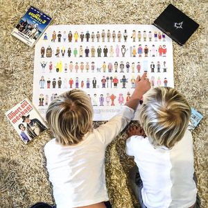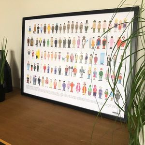 Ode aux grands classiques du cinéma comique, des grands nanards aux chefs d'œuvre. Richement illustrée, cette affiche retrace les incontournables costumes qui ont marqués la comédie française, depuis "Mon oncle" de Tati à "Bienvenue chez les Ch'tis" ou encore "Les Valseuses". La Majorette rend hommage aux célèbres acteurs en humour et vous remémore de sacrés fous rires : la danse yiddish de Louis de Funès dans Rabbi Jacob, la chanson de Jean-Claude Duss dans Les Bronzés font du ski... Un indispensable à voir et à revoir et à accrocher chez soi !